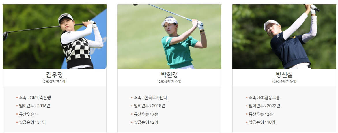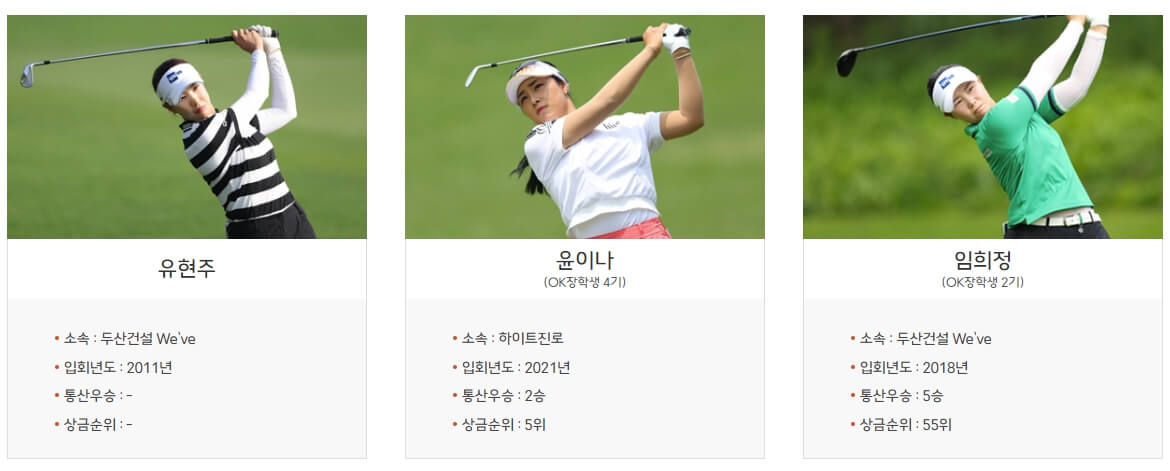 OK골프장학생 출신인 박현경,임희정,윤이나,황유민,방신실을 비롯하여 실력있는 선수들의 참가로 더욱 기대되는 경기인데요~