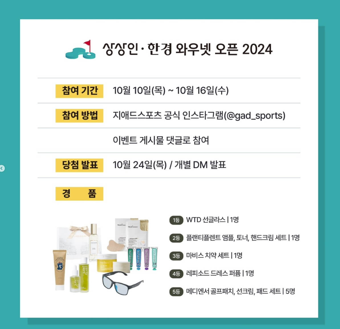 * 골프 용품, 뷰티 상품 등 다양한 경품이 다양하다고 합니다!