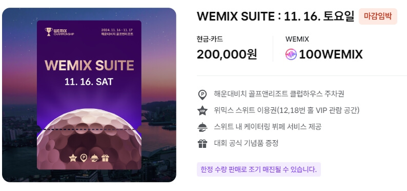 | WEMIX SUITE | 11/16(토) 200,000원 | |