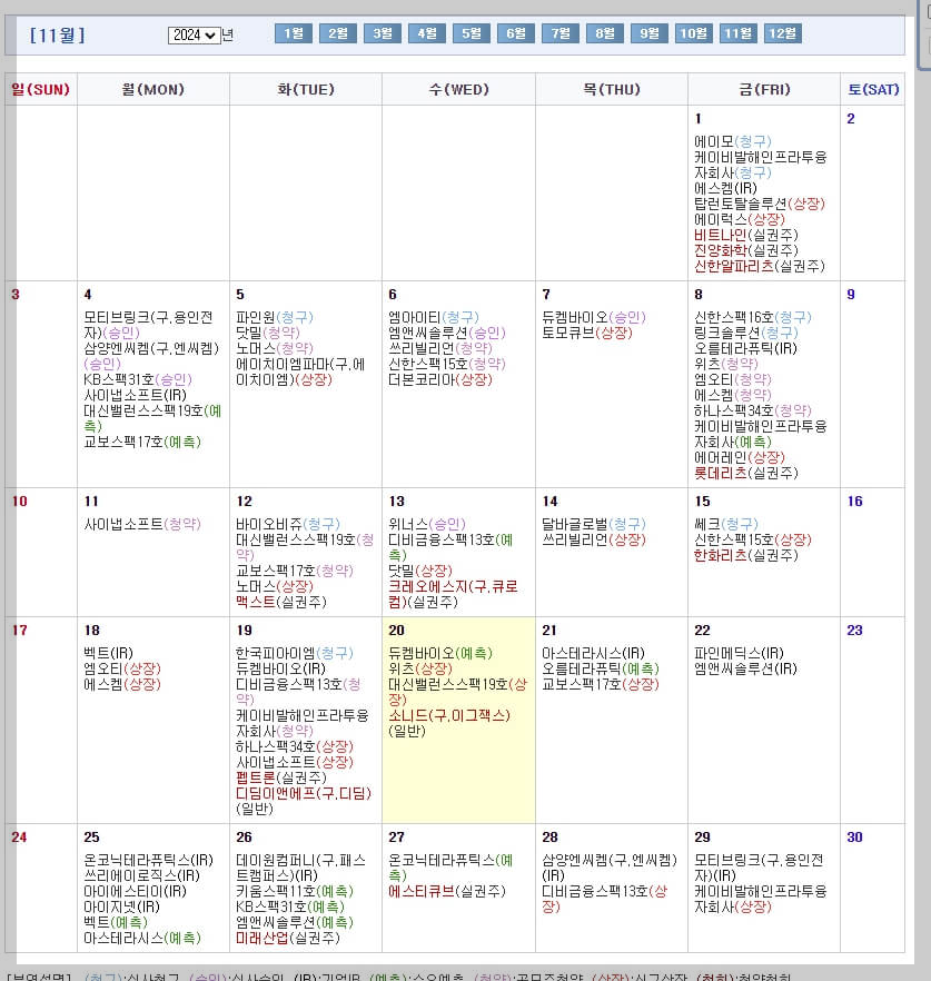 https://www.38.co.kr 에서는 공모주 청약일정 / 신규상장주 / 증시캘린더 등 여러가지 기업관련 정보를 편리하게 볼 수있기 때문에 놓치지 아쉬운 좋은 기업들의 공모 일정을 미리 확인하기 좋습니다.