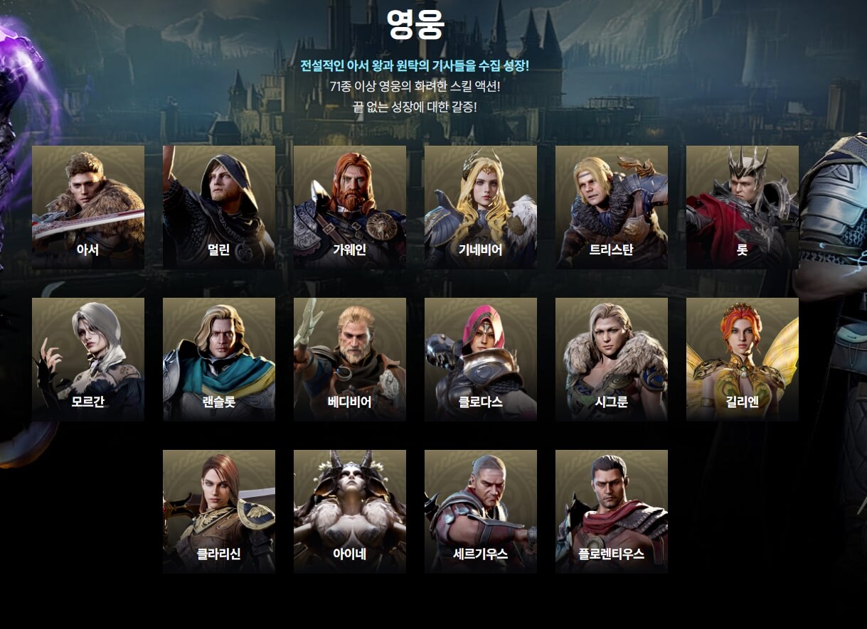 전설급 영웅 '모르간'을 포함한 다양한 캐릭터