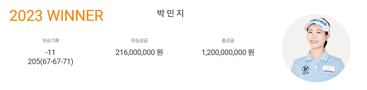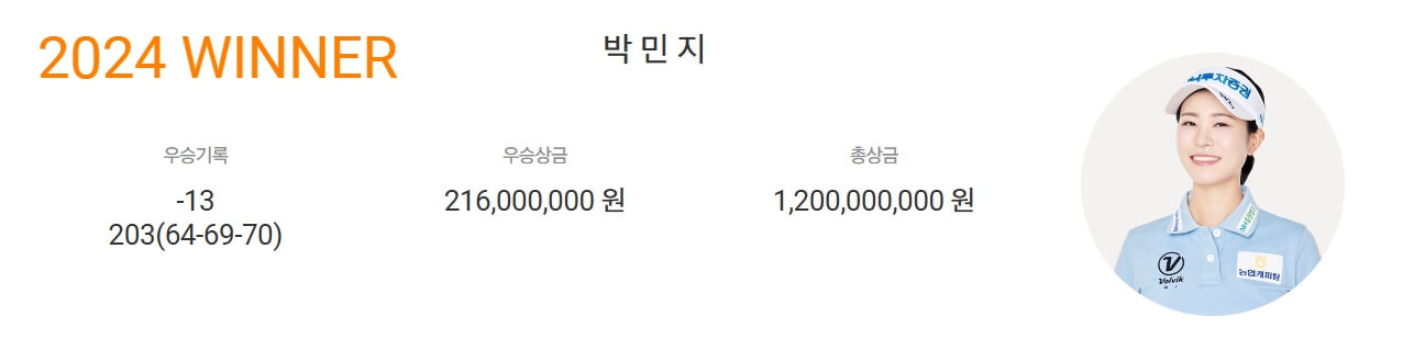참고로, 박민지는 2024년 대회 우승 상금 2억 1,000만 원 전액을 기부해 큰 감동을 안겼으며, 이를 기려 주최 측으로부터 특별 포상금 3억 원을 받기도 했었습니다.