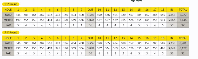 | 전장거리 | 예선 6,722yds, 본선 6,718 yds |